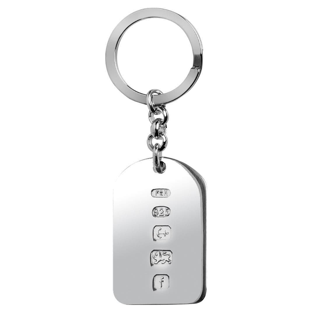 A Sterling Silver Hallmarked Keyring with rounded shoulders and feature hallmarks in our large size.